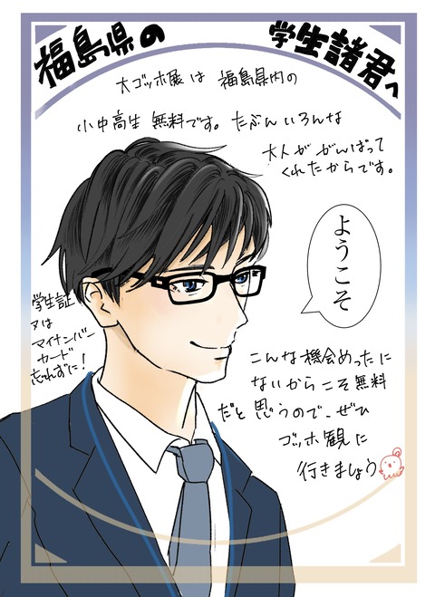 福島県の学生諸君へ 震災から15年 2026年03月11日 よその国から有名な作品をかりるのはかなりお金がかかるし、たくさん利益を出すためならもっと都会で展覧会した方が儲かると思うのですが今回県政150周年&震災から15年という節目の年にあたるので、福島県にもゴッホが来てくれました。しかも小中高生無料で観せてくれるとい ... 続きを読む