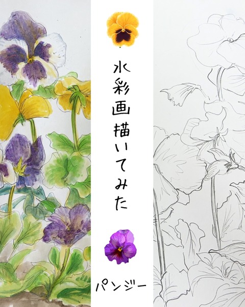 水彩画描いてみた パンジー 2026年02月22日 スケッチの時間も入れたら3時間位。仕上げの鉛筆は入れなくてもいいんですけど、私はちょっとだけ入れるのが好きで、4 B位の小差の鉛筆で、土と植物の間とか花びらの筋とか葉っぱの影とかぎゅっと入れちゃいます。たまに画用紙が絵の具を吸う感じとか絵の具と絵の具が画面の ... 続きを読む