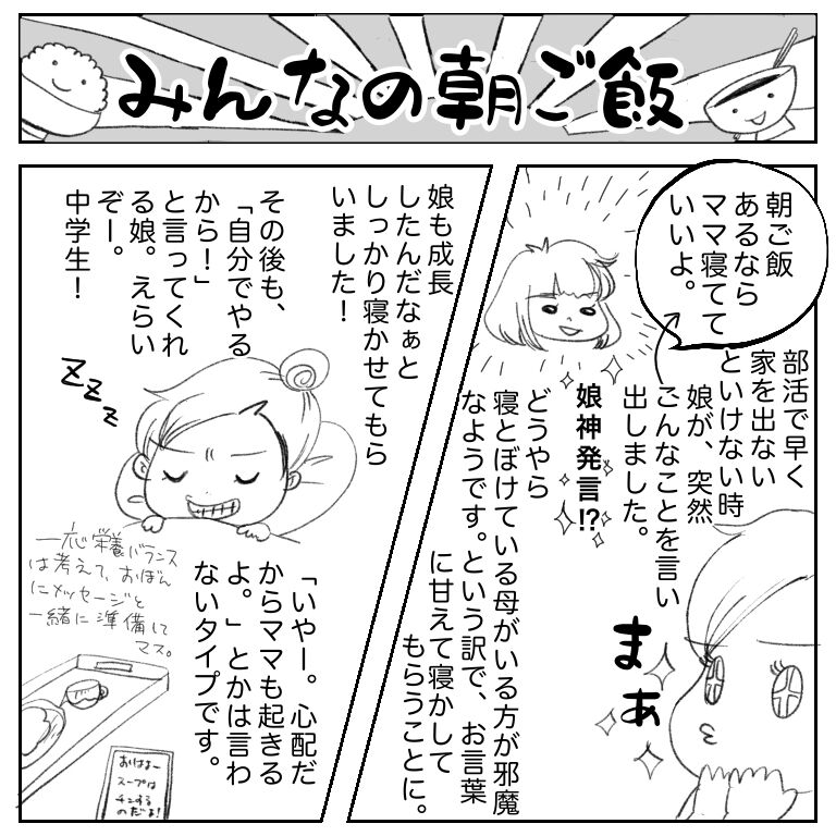 みんなの朝ご飯 2021年04月02日 「日常漫画」カテゴリの最新記事 タグ :#絵日記#子育て#育児#コミックエッセイ#朝ご飯 < 前の記事次の記事 > コメント コメントフォーム 名前 コメント 記事の評価 リセット リセット 顔 星 情報を記憶 コメントを投稿する