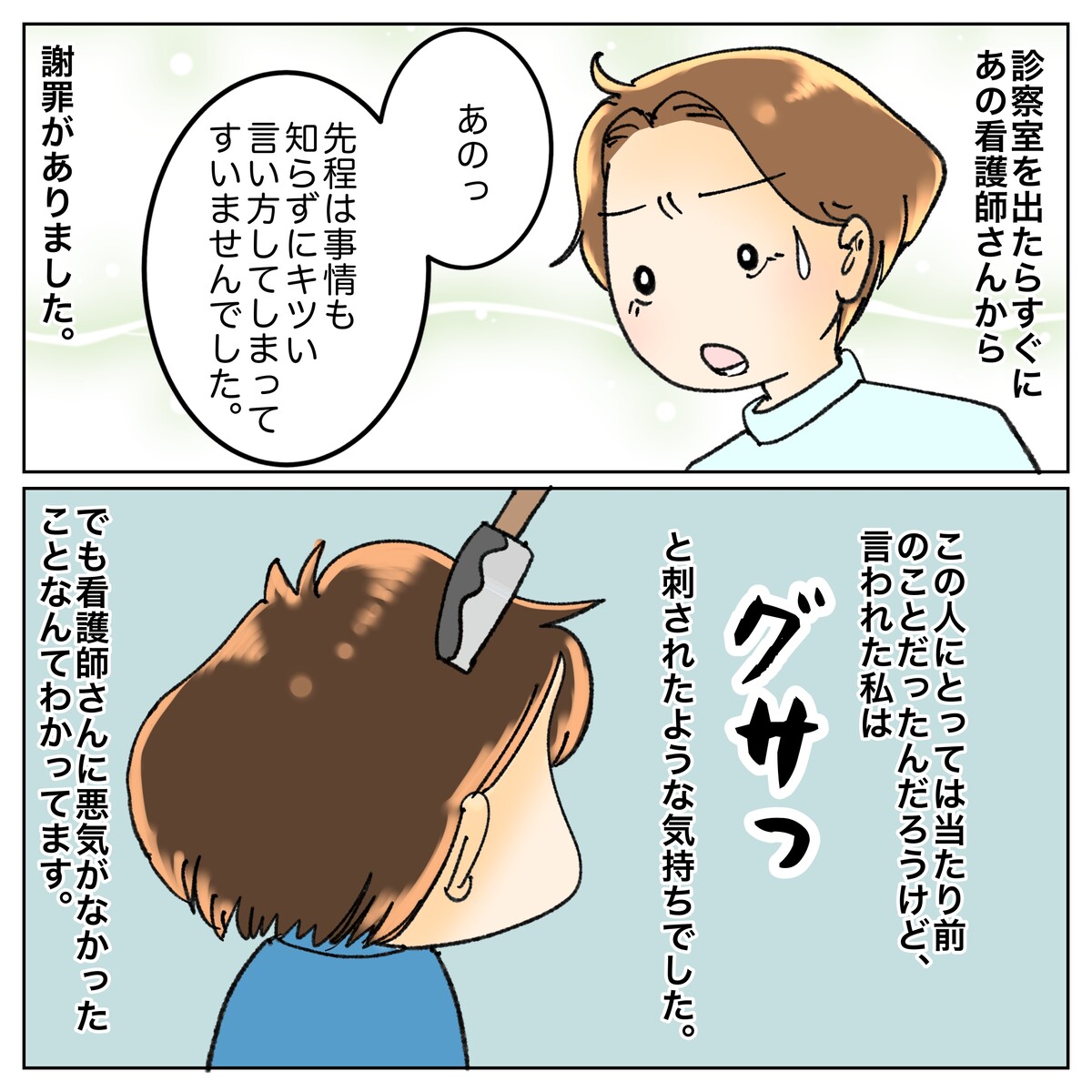 もやもやしていたら看護師さんがわざわざ謝りに来てくれました。