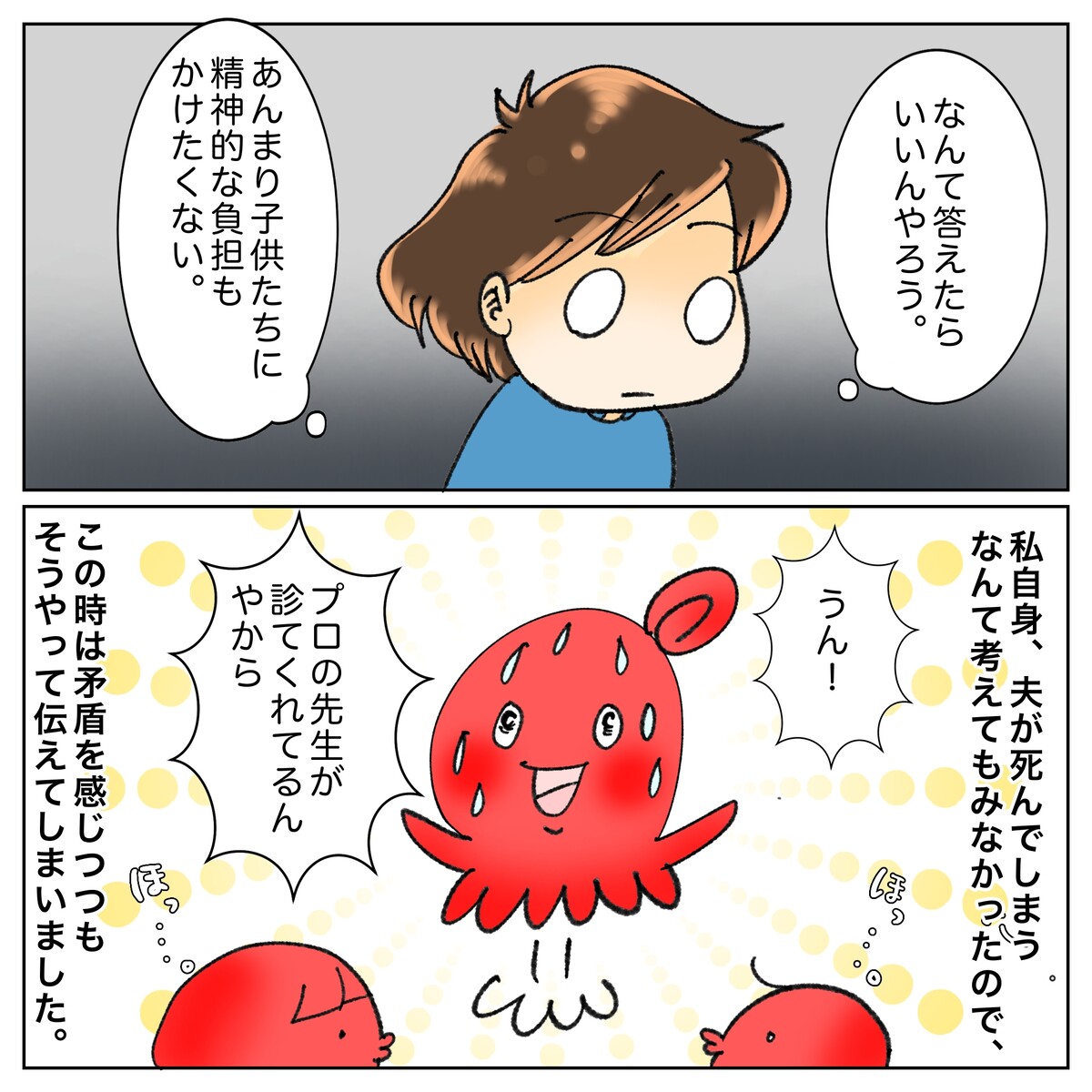 私自身子供たちに聞かれるまで夫が死ぬ可能性があるって言うのをわかっていませんでした。