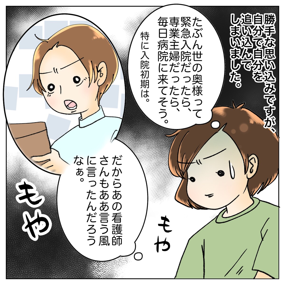 「あそこの奥さんちっともお見舞いに来ないわね〜」とか言われても、気にしない❗️と決意しましたo(`ω´ )o