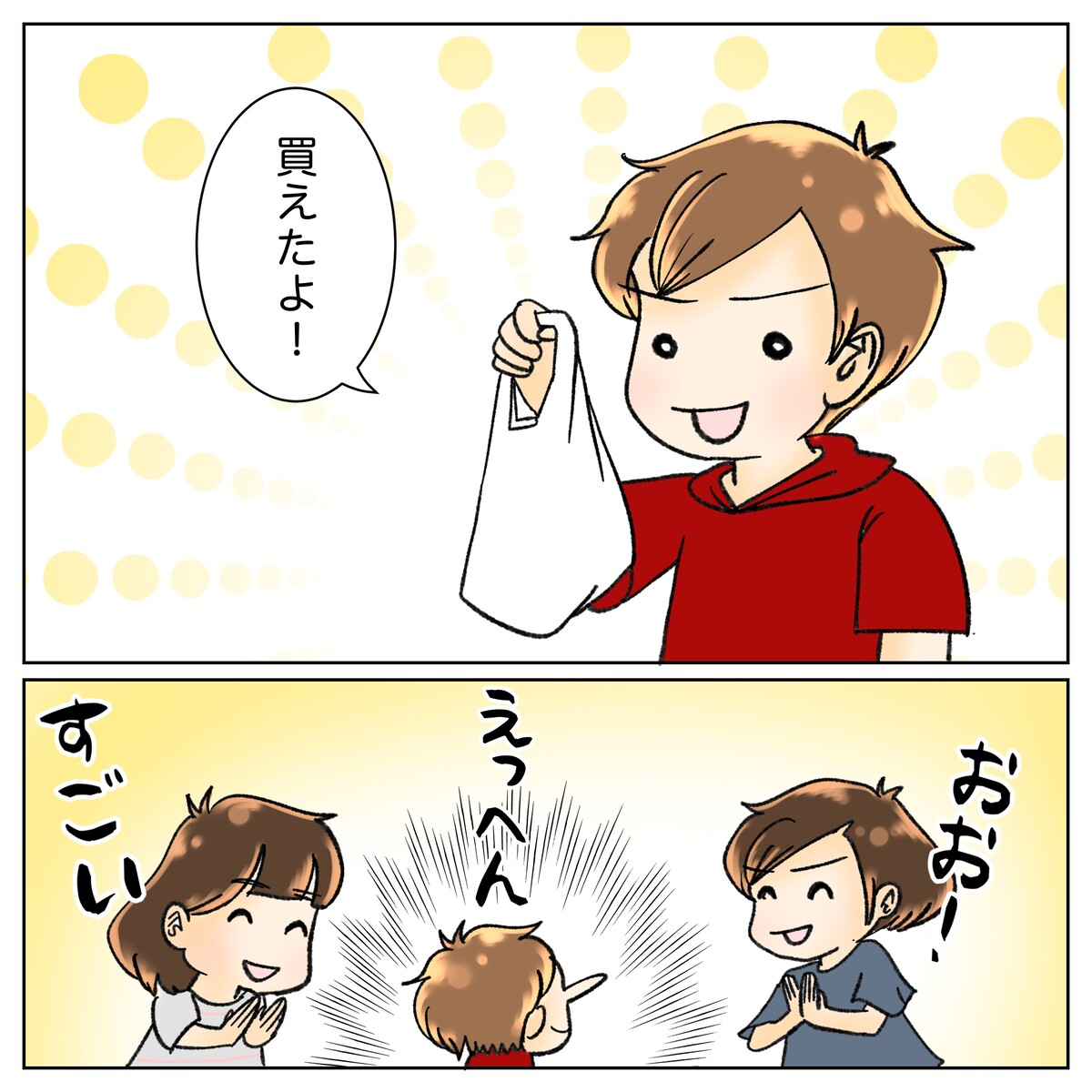 危ない夫の心臓 59・緊急ミッション終了 2022年01月06日 最初から読む☃️ 一つ前の話 次の話🐙✨ 一個前の話 🐙✨ 病気の時っていうのは、しんどいことや辛いことが多いですがたまにいい事や嬉しい驚きとかもあるので、悪いことばっかりじゃないって言うことを描きたくて今回靴下の話をかきました。伝われーーービビビビビ👾⚡️⚡️⚡️今でもこの靴下🧦を大事にはいている夫君でした😅 危ない夫の心臓 50話まで 1話、2話、3話、4話、5話、6話、7話 、8話、9話、10話、11話、12話、13話 、14話、15話、16話、17話、18話、19話、20話、21話、22話、23話 、24話、25話、26話、27話、28話、29話、30話、31話、32話、33話、34話、35話、36話、37話、38話、39話、40話、41話、42話、43話、44話、45話、46話、47話、48話、49話、50話、 夫の危ない心臓50話から51話、52話 、53話、54話、55話、56話、57話、58話 LINE登録してもらえると私が投稿したらお知らせが届くようになります❗️拍手ボタン👏は下にあります。 「危ない夫の心臓」カテゴリの最新記事 タグ :#夫#心不全#心臓#心臓病#コミックエッセイ#絵日記 < 前の記事次の記事 > コメント コメント一覧 (4) 3. みんみん 2022年01月08日 16:50 先のコメント主さんも書かれていましたが、本当にご家族の皆さんのお人柄が素敵で、良いご家族だなぁ〜とジーンと来ました😭✨ 気持ちが温かくなる素敵なエピソードを共有してくださってありがとうございます!☺️ 0 やよい かめ がしました 4. やよいかめ 2022年01月09日 23:34 >>3 褒めていただいてありがとうございます(〃ω〃) でも良いところしか描いてないからそう見えてしまうだけかも知れません( ̄▽ ̄;)あはは。 病気やケガで入院生活が長引くとどんどん気持ちも沈んでいってしまうこともありますが、少しでも良かったことを見つけて、元気の種にしてもらえたらいいなと思います🌱 0 やよい かめ がしました 1. れーこ 2022年01月07日 08:26 ほんと、いい子に育ててる✨ いい子に育ってる✨ 素敵な家族だ✨ 0 やよい かめ がしました 2. やよいかめ 2022年01月07日 20:39 >>1 れーこさんへ ありがとうございます😅 親バカ全開でお伝えしてみました(;´Д`A 0 やよい かめ がしました コメントフォーム 名前 コメント 記事の評価 リセット リセット 顔 星 情報を記憶 コメントを投稿する