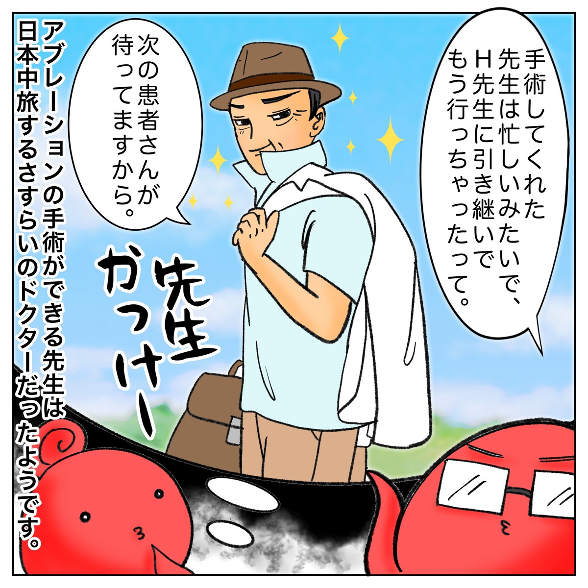 この話は3年前になるので今はアブレーションの技術もだいぶ広まっているのかもしれませんが、当時はアブレーションの手術をしてくれるお医者さんというのが少なかったようです。