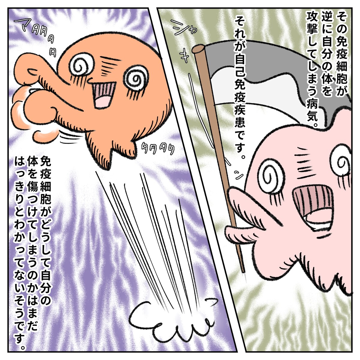 要の覚書 自己免疫疾患③ 2022年02月23日 最初から読む🐙❗️ 一つ前の話🐙💦 次の話🐙❤️🩹 一つ前の話🐙💦 聞いただけでとても痛そうな処置でした😱💦それでも笑いに変えてみようとされてるところがなんだかちょっとほほえましくて😆👍がんばって注射器描きました_φ(・_・すべての治療や処置が痛くなかったらいいんですけどね😫💦 要の覚書シリーズ要の覚書・ぜんそく要の覚書・自己免疫疾患①、②、 LINE登録してもらえると私が投稿したらお知らせが届くようになります❗️拍手ボタン👏は下にあります。 「要の覚書」カテゴリの最新記事 タグ :#漫画#コミックエッセイ#自己免疫疾患#円形脱毛症#不眠症#不安障害 < 前の記事次の記事 > コメント コメントフォーム 名前 コメント 記事の評価 リセット リセット 顔 星 情報を記憶 コメントを投稿する