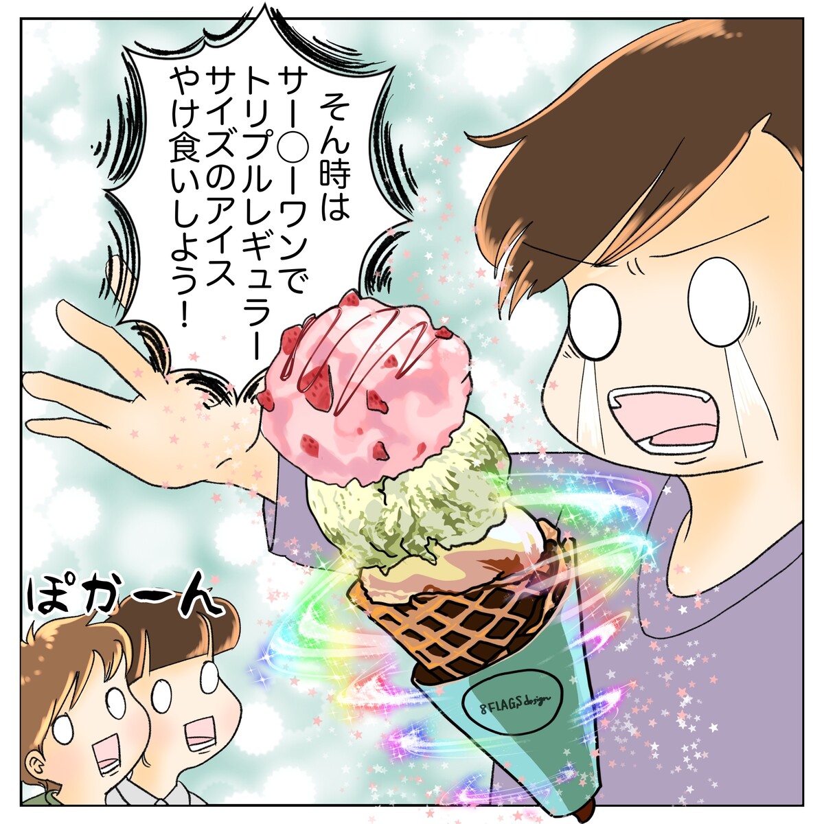 「でもさぁ、3段重ね(トリプル)だとアイスちっちゃいよね」と言ってきたので、